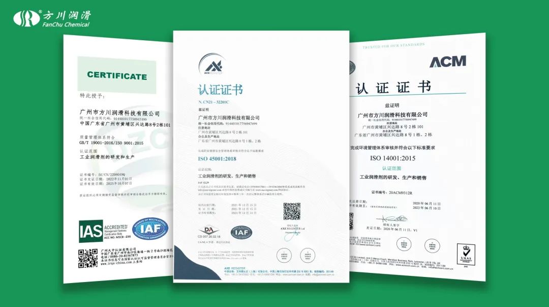 方川已獲得 ISO三體系認證,包含:ISO9001質(zhì)量管理體系、ISO14001環(huán)境管理體系和ISO45001職業(yè)健康安全管理體系。
