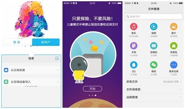 配置方面,X9搭載的是2.0GHz的MSM8953高通八核處理器,4GB內(nèi)存,3050mAh電池容量,支持閃充(而X9 Plus采用全新5V/4.5A低壓閃充方案),這相比X7略有提升。后置攝像頭也提至1600萬像素。系統(tǒng)升級為Android6.0.1,UI界面仍然是Funtouch OS,系統(tǒng)功能部分有所優(yōu)化,如分屏任務(wù),可分屏應(yīng)用增加,支持QQ瀏覽器、天貓、美團、WPS、有道云筆記等,這點算是一個不錯的改進。另外還增加了一個兒童模式,可完全阻斷扣費行為。同時改良的文件管理也使得碎片化的安卓文件查找更加容易。